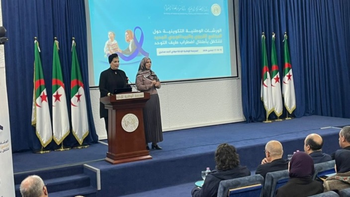 وتنفيذا لتعليمات رئيس الجمهورية، عبد المجيد تبون، الرامية إلى الارتقاء بجودة خدمات التكفل بالأشخاص المصابين باضطراب طيف التوحد، وتجسيدا لمضمون المرسوم التنفيذي المتعلق إنشاء مراكز متخصصة للتكفل بهذه الفئة وتنظيمها وسيرها، أشرفت وزيرة التضامن الوطني والأسرة وقضايا المرأة، د. صورية مولوجي، على مستوى المدرسة الوطنية للإدارة مولاي أحمد مدغري، وبحضور كل من محمد الصغير سعداوي وزير التربية الوطنية، ومحمد الصديق آيت مسعودان وزير الصحة، وعبد الحق سايحي وزير العمل والتشغيل والضمان الاجتماعي، على الافتتاح الرسمي للورشات الوطنية التكوينية حول البرنامج التربوي والبيداغوجي الجديد للتكفل بأطفال اضطراب طيف التوحد، لفائدة المتدخلين من قطاع التضامن الوطني، وإطارات وأساتذة قطاع التربية الوطنية، إلى جانب فعاليات المجتمع المدني النشط في المجال.