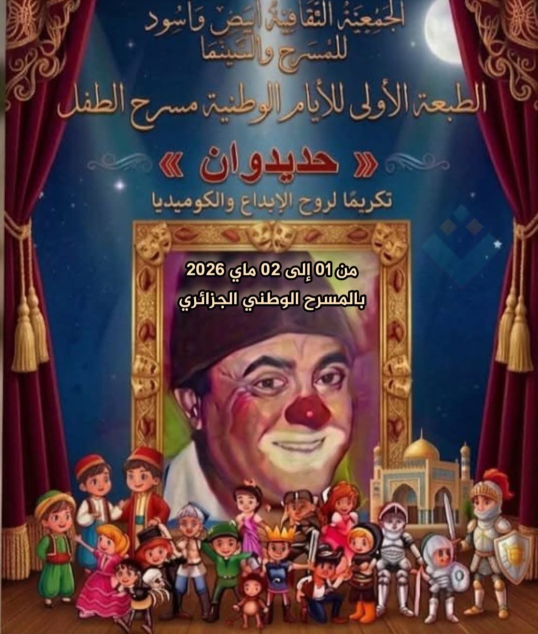من تنظيم الجمعية الثقافية “أبيض وأسود” للمسرح والسينما، سيحتضن المسرح الوطني الجزائري “محيي الدين بشطارزي” من 01 إلى 02 ماي المقبل، الطبعة الأولى من تظاهرة “الأيام الوطنية لمسرح الطفل”، وهذا تكريما لروح الإبداع والكوميديا.