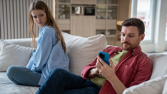 – انعدام الثقة وإثارة مشاعر الغيرة خوفا من أن يكون الانشغال بالهاتف سببه علاقة عاطفية مع شخص آخر.