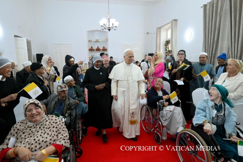 توجه البابا ليون الرابع عشر، الثلاثاء, إلى دار رعاية المسنين بكنيسة أوغستين في ثاني محطة له من زيارته إلى ولاية عنابة.