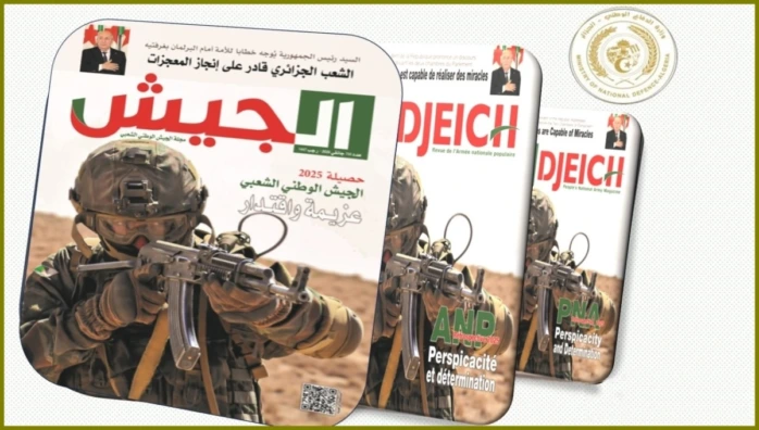 وفي افتتاحيتها التي حملت عنوان “عام جديد بإرادة أقوى”, ذكرت المجلة أنه بانقضاء سنة 2025, تكون الجزائر قد أنهت عهدتها كعضو غير دائم بمجلس الأمن للأمم المتحدة, لمدة عامين وهي العهدة التي خاضت خلالها بحنكة وثبات معارك دبلوماسية ماراطونية, نصرة للقضايا العادلة وأضافت بأن الجزائر كانت صوت الحق والعدل الذي رافع عن القضية الفلسطينية ولم تدخر أي جهد في حشد وتعبئة المجتمع الدولي من أجل وضع حد للعدوان الصهيوني الهمجي على قطاع غزة, منددة بصوت عال وبشدة بالمجازر المروعة والجرائم اللاإنسانية التي ارتكبها في حق الشعب الفلسطيني, مواصلة في الوقت ذاته مطالبتها الحثيثة بإقامة دولة فلسطينية عاصمتها القدس الشريف وتابعت مجلة الجيش قائلة: كما واصلت بلادنا الدفاع عن القضية الصحراوية وعن حق الشعب الصحراوي في تقرير المصير وفضح الانتهاكات المتواصلة للمحتل المغربي الذي ضرب عرض الحائط بكل المواثيق الدولية. وفضلا عن ذلك, كانت الجزائر خلال عهدتها بمجلس الأمن صوتا صادحا وصادقا في خدمة مصالح إفريقيا وتطلعاتها, حيث ناهضت بقوة سياسة التهميش التي تعاني منها القارة مشددة على ضرورة رفع الظلم التاريخي الذي تتعرض له, ملحة على ضرورة توحيد الصف الإفريقي, وهي مواقف مشرفة كانت محل إشادة وثقة الأفارقة, ثقة ترجمها انتخاب الجزائر نائبا لرئيس مفوضية الاتحاد الإفريقي وعضوا في مجلس السلم والأمن للاتحاد الإفريقي. ولفتت الافتتاحية إلى أن الجزائر كانت بحق أهلا لها, وهو ما تجسد من خلال جهودها المضنية من أجل تعزيز الأمن والتنمية بإفريقيا, عبر احتضانها عديد التظاهرات الإقليمية التي كان لها وقع إيجابي على القارة وشعوبها, على غرار الطبعة 12 للندوة رفيعة المستوى حول السلم والأمن في إفريقيا-مسار وهران والمؤتمر الدولي حول جرائم الاستعمار في إفريقيا والطبعة الرابعة لمعرض التجارة البينية الإفريقية والمؤتمر الإفريقي الرابع للمؤسسات الناشئة أو من موقعها كعضو في مختلف الهيئات الدولية, على غرار المجلس الاقتصادي والاجتماعي للأمم المتحدة واعتبرت أن هذه النجاحات التي حققتها بلادنا على المستويين الإقليمي والدولي تأتي في ظل الحركية التنموية الكبيرة التي تشهدها على مختلف المستويات وفي كافة القطاعات كالطاقة والمناجم والبنية التحتية والسكن والصحة وغيرها, والتي تعكسها الإنجازات الكبرى التي تجسدت والمكاسب الاقتصادية والاجتماعية التي تعرف وتيرة متسارعة, بفضل تجند كافة أبناء الجزائر، لا سيما الشباب الذي يلقى كل الدعم والرعاية ليكون القاطرة التي تقود بلادنا نحو بلوغ الوجهة المنشودة وقطع المزيد من الأشواط على درب الانتصارات. وفي هذا الصدد, استحضرت الافتتاحية ما أكده رئيس الجمهورية, القائد الأعلى للقوات المسلحة, وزير الدفاع الوطني، السيد عبد المجيد تبون, في تهانيه للشعب الجزائري بمناسبة حلول العام الميلادي الجديد 2026 بقوله أن العام الجديد سيكون, إن شاء الله فخرا ورفعة لكل الجزائريات والجزائريين, بما حققته سواعد الرجال وتضحياتهم في مختلف الميادين, لتبلغ الجزائر مصاف الدول الناشئة بكل أمان والأكيد أن ما تم تحقيقه -تقول المجلة لم يكن وليد الصدفة، بل ثمرة للرؤية السديدة للسلطات العليا للبلاد, وعلى رأسها السيد رئيس الجمهورية, ولوعي وإرادة الشعب الجزائري في النهوض ببلادنا وإقامة قواعدها المتينة ولتضافر جهود كافة مؤسسات الدولة وفي هذا السياق، استعرضت الافتتاحية جهود الجيش الوطني الشعبي, سليل جيش التحرير الوطني, الذي يعكف بكل عزيمة وإخلاص على تأمين كافة متطلبات تعزيز جاهزيته العملياتية والرفع من قدراته القتالية وتوفير كل موجبات الحفاظ على أمن واستقرار الوطن وسكينة المواطن, فضلا عن إسهامه في جهود التنمية الوطنية بما يكفل مواصلة مسار المشروع النهضوي الوطني بكل ثبات في كنف الاستقرار والطمأنينة, وهو ما تترجمه النتائج النوعية التي حققها السنة الفارطة على مختلف الأصعدة وفي هذا الإطار, ذكرت المجلة بالنتائج المحققة في 
