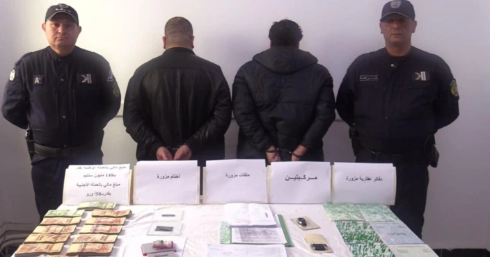 ومكنت العملية من حجز ملفات ووثائق إدارية مزورة, نسخ دفاتر عقارية مزورة, أختام إدارية مزورة, مركبتين, مبلغ بالعملة الوطنية يقدر بـ (140) مليون سنتيم ومبلغ بالعملة الأجنبية يقدر بـ (50) أورو. وقد تم تقديم المشتبه فيهما أمام وكيل الجمهورية المختص إقليميا, وفقا لملف إجراءات جزائية, مثلما خلص اليه البيان.