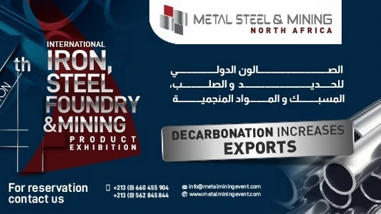 في إطار الحركية الاقتصادية التي تعرفها الجزائر، خاصة بعد الشروع في استغلال منجم الحديد غارا جبيلات، تستعد مؤسسة Stall Expo Event لإطلاق الطبعة الرابعة من الصالون الدولي للحديد والصلب والمواد المنجمية، ابتداء من الـ30 مارس إلى الـ1 أفريل تحت رعاية وزارة الصناعة بقصر المعرض الصنوبر البحري جناح U.