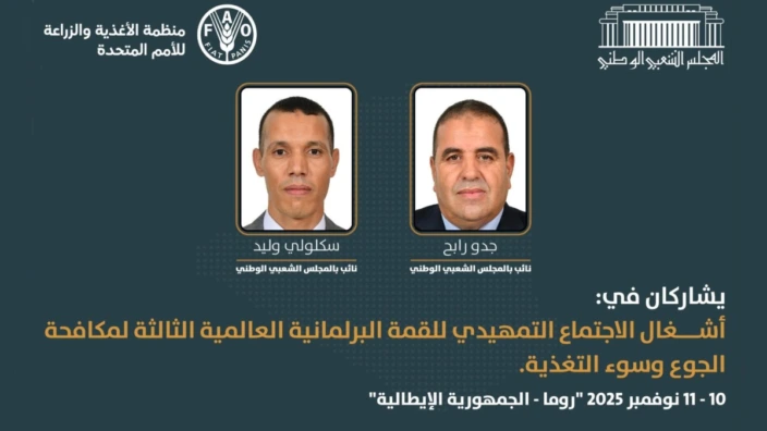 يشارك المجلس الشعبي الوطني، ابتداء من يوم غد الإثنين بالعاصمة الايطالية روما، في أشغال الإجتماع التمهيدي للقمة البرلمانية العالمية الثالثة لمكافحة الجوع وسوء التغذية.