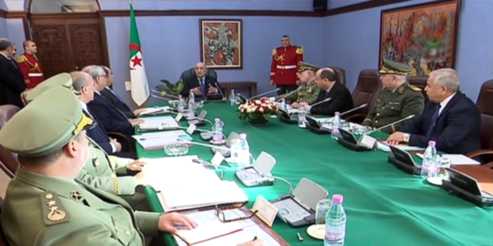 وعقد الرئيس تبون أول اجتماع للمجلس الأعلى للأمن بصفته وزيراً للدفاع، بعد أقل من أسبوع على استلامه السلطة، وحضر الاجتماع الوزير الأول بالنيابة صبري بوقادوم وقائد أركان الجيش بالنيابة اللواء سعيد شنقريحة ومدراء الأمن الداخلي والدرك والشرطة.