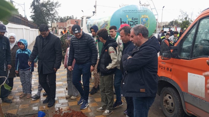 كما أشرف الوالي المنتدب بالمناسبة على عملية تشجير بمحيط الحي، في خطوة تهدف إلى دعم المساحات الخضراء بما يساهم في إعطاء بعد جمالي وبيئي.
