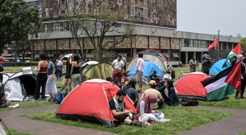 أنشأ عشرات الطلاب والناشطين المؤيّدين للفلسطينيين في مكسيكو مخيما تضامنيا أمام “جامعة المكسيك الوطنية المستقلّة”، أكبر جامعة في البلاد،الجمعة ، وذلك احتجاجا على استمرار الحرب على قطاع غزة، وتضامنا مع الطلاب المحتجّين في الولايات المتّحدة.