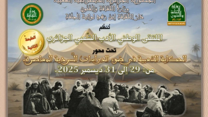 وستكون هذه التظاهرة آخر الأنشطة الثقافية لدار الثقافة لسنة 2025، ويشارك فيها أساتذة وباحثون جامعيون مختصون في الأدب الشعبي ومن المهتمين أيضا بهذا اللون الثقافي الذي يشكل بعدا وطنيا بفسيفسائه الإبداعية. وتتضمن أشغال هذا الحدث الثقافي الذي سينظم على مدار ثلاثة أيام كاملة، ندوات وجلسات علمية يشرف عليها أساتذة جامعيون وكذا نقاد متخصصون في الحكاية الشعبية الجزائرية. كما يتضمن برنامج هذا الملتقى فقرات أدبية تشتمل قراءات شعرية سيقدمها شعراء الملحون من عدة ولايات. ومن أجل تعزيز المقروئية في الأدب الشعبي، ستنظم جلسات للبيع بالإهداء لكتب ودواوين لرموز شعرية في الشعر الشعبي ممن لهم صيت محلي وكذا وطني. للإشارة، يشكل هذا الموعد الثقافي مناسبة لتبادل الأفكار والرؤى في ماضي وحاضر، وكذا مستقبل الأدب الشعبي الجزائري بألوانه المختلفة كالحكاية والشعر الملحون وغيرها من الابداعات المكتوبة والشفهية.