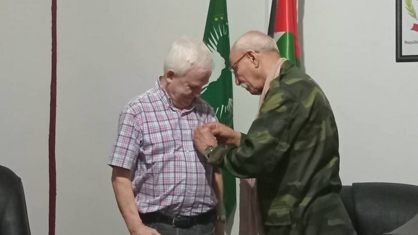 وشح رئيس الجمهورية الصحراوية، الأمين العام للجبهة السيد إبراهيم غالي ، متضامنين أجانب بوسام الجمهورية ، وذلك على هامش مشاركتهم في الاحتفالات الرسمية المخلدة للذكرى الخمسين لإعلان الجمهورية.
