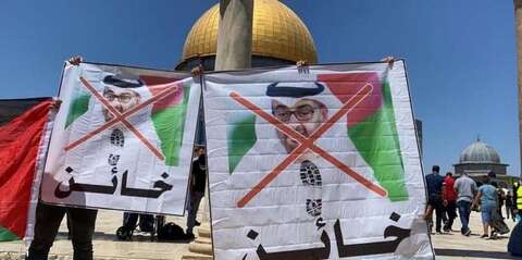 وداس المحتجون وأحرقوا لافتات عليها صور لولي العهد الإماراتي قبل أن تقتحم القوات الإسرائيلية المسجد الأقصى وتصادرها.وفي نابلس، نظم عدد الفلسطينيين مسيرة ضد اتفاق السلام بين الإمارات وإسرائيل، ودعا المحتجون الشعب الإماراتي إلى إيقاف ما سموها بالمؤامرة.