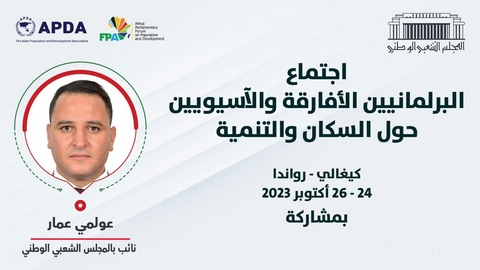 يشارك المجلس الشعبي الوطني, بداية من يوم غد الثلاثاء, في اجتماع البرلمانيين الأفارقة والآسيويين حول السكان والتنمية الذي تحتضنه عاصمة رواندا، كيغالي, حسب ما أفاد به يوم الاثنين بيان للمجلس.