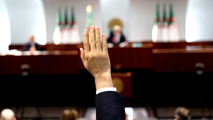 وجرى التصويت في جلسة علنية ترأسها السيد ابراهيم بوغالي, رئيس المجلس الشعبي الوطني, بحضور وزير الداخلية والجماعات المحلية والنقل, السيد السعيد سعيود, ووزيرة العلاقات مع البرلمان, السيدة نجيبة جيلالي.