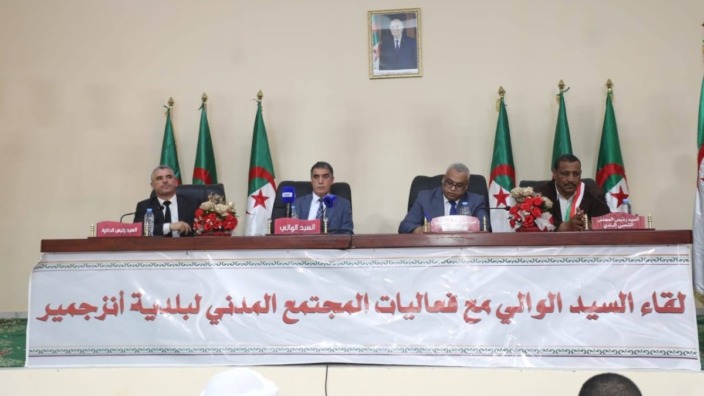أشرف أول أمس ضويفي فضيل والي ولاية أدرار، على زيارة العمل والتفقد لبلدية أنجزمير، أين عقد الوالي لقاء مع المجتمع المدني وفعاليات المجتمع المدني ببلدية أنجزمير، على مستوى قاعة المركز الثقافي بتيدماين.