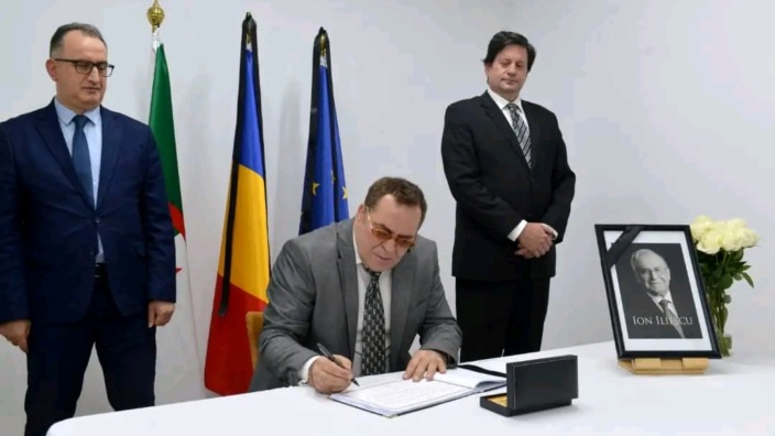قام وزير الاتصال, السيد محمد مزيان, بمقر سفارة رومانيا بالجزائر العاصمة، باسم رئيس الجمهورية, السيد عبد المجيد تبون, بالتوقيع على سجل التعازي إثر وفاة الرئيس الروماني الأسبق, إيون إليسكو.
