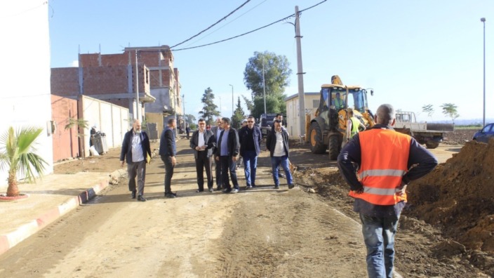 وكانت المحطة الأولى معاينة مشروع تزفيت الطرق و تهيئة الأرصفة بحي ONAB ، حيث تقدر نسبة تقدم الأشغال بحوالي 15 %، تتخللها بعض العقبات التي تبطئ من وتيرة الإنجاز و المتمثلة في أشغال شبكة الكهرباء تحت أرضية تشرف عليها مؤسسة سونلغاز، إذ أن تقدم أشغال تزفيت الطريق مرهون بإستكمال أشغال الكهرباء، حيث تعهد ممثل المقاولة المتعاقدة مع مؤسسة سونلغاز بإتمام الأشغال في مدة أسبوع إلى 10 أيام، كما أسدى الوالي المنتدب تعليمات لمسير المؤسسة المكلفة بإنجاز أشغال تهيئة الأرصفة في الشروع في وضع بلاط الأرصفة في المقاطع غير المعنية بأشغال الكهرباء.