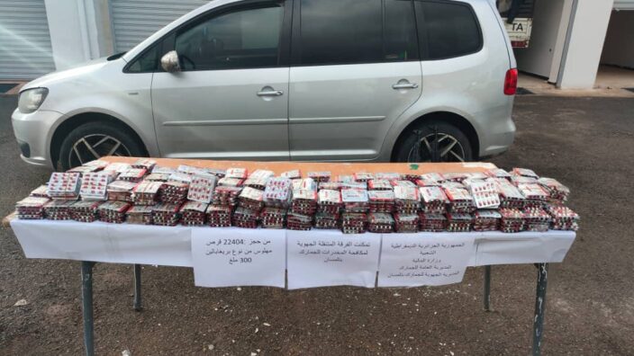 ومكنت العملية الأولى وفق البيان من حجز 50800 قرص مهلوس كانت مخبأة بإحكام بشاحنة وسيارة سياحية كان على متنهما أربعة أشخاص، فيما تم في العملية الثانية حجز 3765 قرصا مهلوسا بحوزة امرأتين تقلان سيارة أجرة.