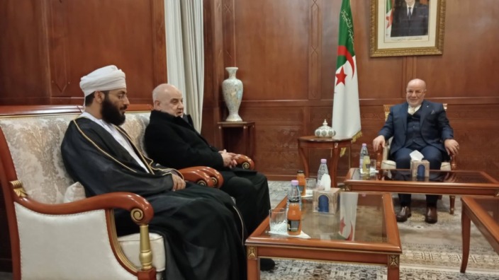 وأفاد بيان لوزارة الشؤون الدينية والأوقاف، أن الضيفين يتمثلان في كلًّا من فضيلة الشيخ طاهر بن زاهر بن مسعود بن سعيد العزواني، مدير دائرة القرآن الكريم بوزارة الأوقاف والشؤون الدينية بسلطنة عُمان الشقيقة، وفضيلة الشيخ الدكتور محمد فهد خاروف، أستاذ القراءات القرآنية والتفسير وعلوم القرآن من الجمهورية العربية السورية الشقيقة، اللذين حلّا على الجزائر للمشاركة في تحكيم المسابقة الدولية لجائزة الجزائر لحفظ القرآن الكريم وتجويده، في طبعتها الحادية والعشرين. كما أضاف البيان، أن اللقاء شكل فرصة لترحيب الوزير بضيوف الجزائر، متمنّيًا لهم إقامة طيبة وتوفيقًا في مهمتهم النبيلة. وبدورهما عبّر الشيخان الفاضلان، عن عميق شكرهما وامتنانهما لحفاوة الاستقبال وكرم الضيافة، مشيدين بالعناية التي توليها الجزائر، لخدمة القرآن الكريم وأهله، وبمكانة هذه المسابقة الدولية وأثرها في ترسيخ القيم القرآنية ونشرها.