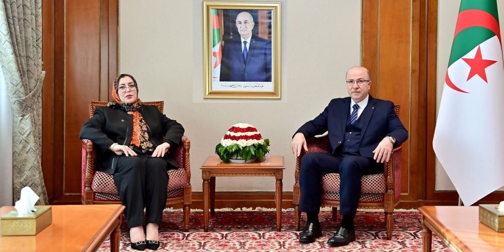 استقبل الوزير الأول, السيد أيمن بن عبد الرحمان, يوم الأحد بالجزائر العاصمة, وزيرة الدولة لشؤون المرأة بحكومة الوحدة الوطنية لدولة ليبيا, السيدة حورية الطرمال, التي تقوم بزيارة عمل إلى الجزائر، حسب ما أفاد به بيان لمصالح الوزير الأول.