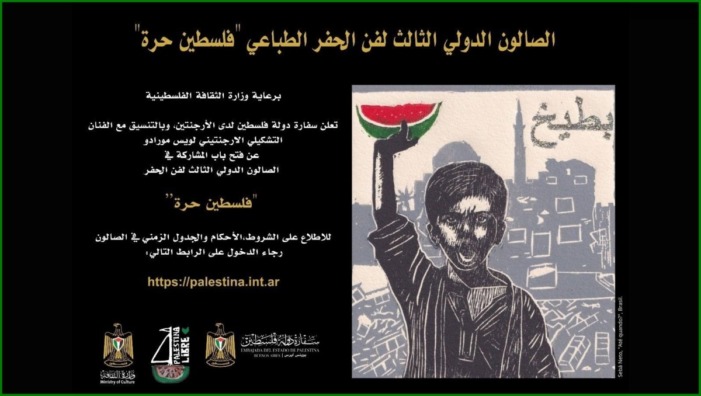 أعلنت سفارة دولة فلسطين بالجزائر، الثلاثاء، عن إطلاق المسابقة الدولية “في فن الحفر الطباعي”، التي تنظمها سفارة دولة فلسطين في الأرجنتين، بالتعاون مع الفنان التشكيلي لويس مورادو (Luis Morado).