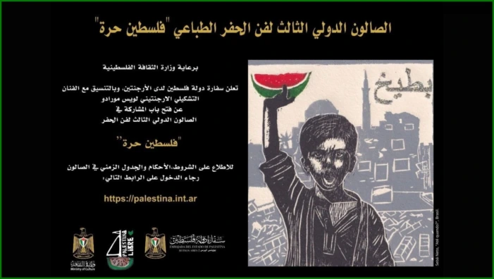 وكشف بيان للسفارة، أنه سيتم خلال هذه التظاهرة، عرض أفضل الأعمال المختارة، في الصالون الدولي لفن الحفر الطباعي: “فلسطين حرة” المزمع إقامته في دولة الأرجنتين العام القادم بتاريخ 29/11/2026، وذلك بمناسبة إحياء اليوم العالمي للتضامن مع الشعب الفلسطيني، حيث آخر أجل لاستلام الأعمال حدد بتاريخ 22/04/2026. داعية الراغبين في معرفة المزيد من المعلومات، حول المسابقة الدولية في فن الحفر الطباعي، والاطلاع على شروط المشاركة والتسجيل، لزيارة موقع سفارة دولة فلسطين في الأرجنتين، عبر الرابط: