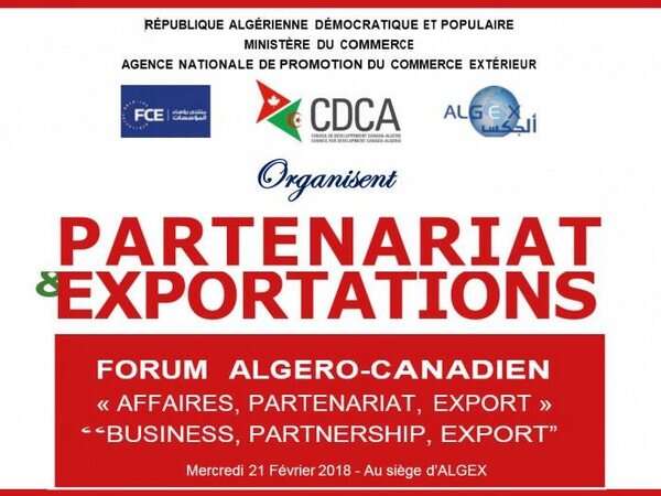 وتهدف الوكالة الوطنية لترقية التجارة الخارجية (ألجكس) ومجلس التنمية الكندي الجزائري (CDCA) بالشراكة مع منتدى رؤساء المؤسسات (FCE)، من خلال هذا المنتدى الجزائري الكندي حول “الشراكة والتصدير”، إلى تسهيل وتطوير علاقات الأعمال والتدفقات التجارية بين رجال أعمال البلدين وبعث ديناميكية لإنشاء فرص شراكة جديدة بين المؤسسات الجزائرية والكندية.