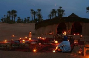 بعد انتهاء وجبة العشاء تبدأ الفرقة الموسيقية بعزف وغناء مقاطع موسيقية محلية من أجل التعريف بالتراث، فرقة متكونة من ستة أفراد يقودها أصغرهم سنّا المدعو “التوهامي”، يجلسون على الأرض فوق زرابي، الأوّل يضرب على دربوكة من الجلد كبيرة الحجم، الثاني يعزف على آلة السانتي، الثالث يلامس أوتار القيتار، الرابع يحمل دربوكة صغيرة من الجلد يضرب عليها بيد واحدة، إضافة إلى القرقابو التي لا بدّ وأن تكون حاضرة في كل الفرق الموسيقية، كما يتم جلب شخص مختص في التصفيق.