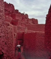 حين تدخل أزقّة “تيميمون”، تظهر لك بناياتها المنخفضة، بأبوابها الضيقة، لا تحمل اسم العائلة ورقم المنزل إلاّ نادرا، واللون الأحمر الآجوري والأبيض يطغيان على معالم المدينة، كما تتميز المدينة بوحدة طابعها العمراني، فالمساكن ومراكز البريد والمدارس والمديريات والعيادات كلها تشترك في ذات الطابع، والسر في ذلك يعود للون رمل واسمنت “تيميمون” الأحمر الآجوري، ويدخل اللون الأبيض على البنايات ليعكس حرارة شمس الصحراء اللافحة.