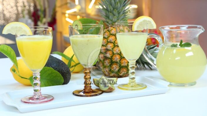 - توضع قطع الأناناس في خلاط كهربائي ويضاف إليها شراب الليمون حتى تغطي كليا.
