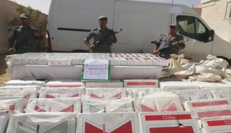 تمكن أعوان كل من الفرقة المتنقلة التابعة لمصالح مفتشية الأقسام للجمارك بالوادي بإقليم اختصاص المديرية الجهوية للجمارك بورقلة، والفرقة الجهوية لمكافحة التهريب التابعة لمصالح المديرية الجهوية للجمارك بإيليزي، من حجز 1750 خرطوشة سجائر تم ضبطها مخبأة في مكان مهيأ خصيصا للتهريب على متن شاحنة تبريد، و15000 علبة سجائر تم ضبطها على متن شاحنة صغيرة مموهة بـ 400 كغ من ورق الحنة “بضاعة تخفي الغش”.