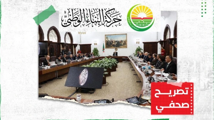 تابعت حركة البناء الوطني مخرجات اجتماع مجلس الوزراء المنعقد بداية هذا الأسبوع، بجدول أعمال ثري يتناول مدارسة مشاريع قوانين عضوية وتعديلات دستورية تقنية، تتعلق بتكريس وتعزيز مكاسب الديمقراطية في الجزائر، ولاسيما القانونين العضويين المتعلقين بالأحزاب السياسية وبالانتخابات، باعتبارهما ركيزتين في تنظيم الحياة السياسية وتعزيز المشاركة.