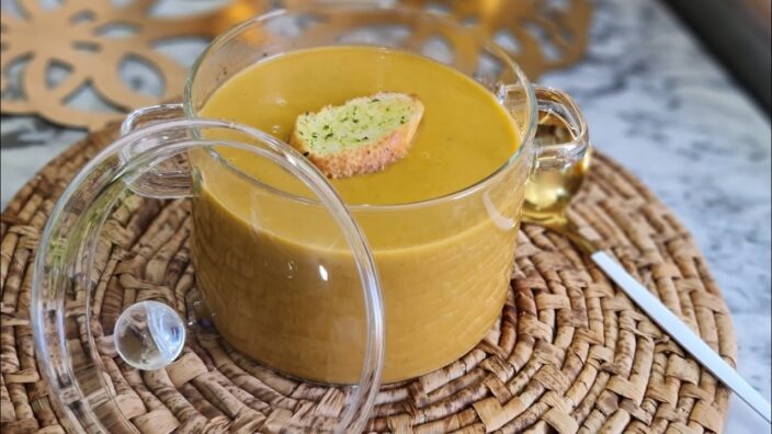 بعد الطهي ننزع الزعيترة ونطحن الكل بالخلاط الكهربائي. تقدم مع الخبز المحمص.