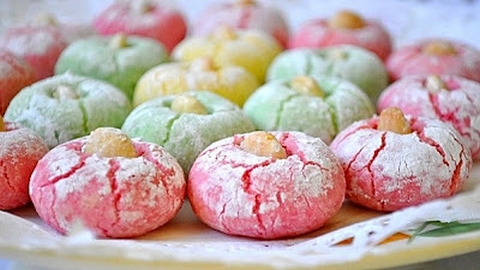 ضعي اللوز المطحون ناعم، السكر، الملون، ويجب أن تتحصلي على لون زهري أضيفي بياض البيض وماء الزهر اخلطي الكل ثم شكلي بالعجينة كرات متوسطة الحجم حسب رغبتك، رمديها في السكر ثم حطي على كل واحدة حبة لوز مقشرة.