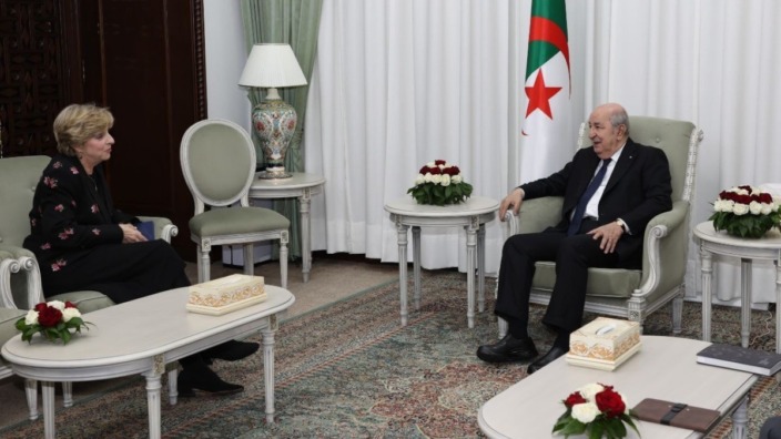 استقبل رئيس الجمهورية، عبد المجيد تبون، الثلاثاء، سعادة سفيرة الولايات المتحدة الأمريكية بالجزائر، إليزابيث مور أوبين، التي أدّت له زيارة وداع غداة انتهاء مهامها.