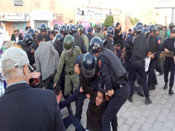 تدخلت قوات القمع المغربية ضد متظاهرين صحراويين بالعيون المحتلة ، حسب ما أفادت به الجمعية الصحراوية لضحايا الانتهاكات المغربية المرتكبة من طرف الدولة المغربية . وأضافت الجمعية أن الصحراويين تظاهروا استجابة للنداء الذي أطلقته تنسيقية الفعاليات الحقوقية بالعيون المحتلة ، وذلك للمطالبة بإطلاق سراح المعتقلين السياسيين الصحراويين مجموعة “أكديم إزيك” والتضامن مع عائلاتهم.وقد سجلت الجمعية الصحراوية