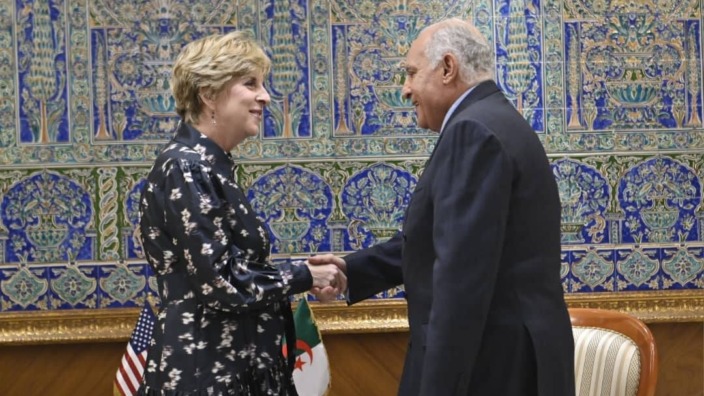 وجاء في البيان: “استقبل وزير الدولة، وزير الشؤون الخارجية والجالية الوطنية بالخارج والشؤون الإفريقية، السيد أحمد عطاف، اليوم بمقر الوزارة، السيدة إليزابيث مور أوبين، سفيرة الولايات المتحدة الأمريكية، التي أدت له زيارة وداع على إثر انتهاء مهامها بالجزائر.”
