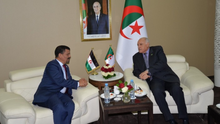 استقبل وزير الدولة وزير الشؤون الخارجية والجالية الوطنية بالخارج والشؤون الإفريقية, أحمد عطاف، الاثنين، بالمركز الدولي للمؤتمرات “عبد اللطيف رحال” بالجزائر العاصمة, وزير الخارجية والشؤون الإفريقية للجمهورية العربية الصحراوية الديمقراطية, محمد يسلم بيسط, حسب ما أفاد به بيان للوزارة.