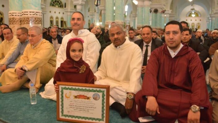 وتوج بالمرتبة الأولى في حفظ القرآن الكريم كاملا الطالب قلالش يحيي من مسجد “عمر بن الخطاب” بعين تموشنت وعادت المرتبة الأولى في حفظ نصف القرآن الكريم للطالبة فلاحي نفيسة من مسجد “خالد بن الوليد” ببلدية العامرية حسب النتائج التي أعلنت عنها مديرية الشؤون الدينية والأوقاف خلال هذا الحفل الذي أشرف عليه والي عين تموشنت مبروك أولاد عبد النبي بحضور ممثلي السلطات المحلية بالولاية وفي مسابقة “الخاتم الذهبي” التي نظمها قطاع الشؤون الدينية والأوقاف لفائدة السيدات والماكثات بالبيت الحافظات للقرآن الكريم توجت السيدة المختوم خولة من مسجد “خالد بن الوليد” من بلدية وادي الصباح بذات المنافسة المخصصة لذات الفئة كما تحصلت المدرسة القرآنية “الإمام الرازي” ببلدية حمام بوحجر على المرتبة الأولى في المسابقة التي نظمت بين المدارس القرآنية بالولاية