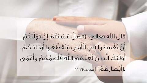 قال عز وجل “وَاتَّقُوا اللَّهَ الَّذِي تَسَاءَلُونَ بِهِ وَالْأَرْحَامَ إِنَّ اللَّهَ كَانَ عَلَيْكُمْ رَقِيبًا” النساء: 1.