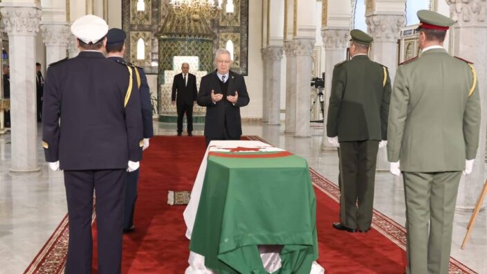 وكان من بين الذين ألقوا النظرة الأخيرة على جثمان المجاهد اليامين زروال, رئيس مجلس الأمة, السيد عزوز ناصري ورئيس المجلس الشعبي الوطني, السيد إبراهيم بوغالي, ورئيسة المحكمة الدستورية, السيدة ليلى عسلاوي, والوزير الأول, السيد سيفي غريب, ومدير ديوان رئاسة الجمهورية, السيد بوعلام بوعلام, إلى جانب أعضاء من الطاقم الحكومي الذين قرأوا فاتحة الكتاب ترحما على روحه الطاهرة. كما ألقى النظرة الأخيرة على جثمان الفقيد, كبار ضباط وإطارات الجيش الوطني الشعبي, بالإضافة إلى شخصيات وطنية ومسؤولي أحزاب سياسية ومجاهدين وجمع من المواطنين الذين توافدوا على قصر الشعب للترحم على روح الرئيس الأسبق, المجاهد اليامين زروال، وترحم على روح الفقيد أيضا، أعضاء من السلك الدبلوماسي المعتمد بالجزائر. وكان جثمان الفقيد قد وصل إلى قصر الشعب, محمولا على أكتاف ضباط من الجيش الشعبي الوطني ومسجى بالعلم الوطني, للسماح بإلقاء النظرة الأخيرة عليه, على أن يوارى جثمانه الثرى, اليوم الاثنين, بعد صلاة الظهر بمسقط رأسه بباتنة. وقد تميز الفقيد الذي هو من مواليد 3 جويلية 1941 بمدينة باتنة, بمسيرة نضالية حافلة, حيث التحق الراحل مبكرا بصفوف جيش التحرير الوطني سنة 1957 وساهم في ثورة أول نوفمبر المجيدة قبل أن يواصل مساره بعد الاستقلال ضمن صفوف الجيش الوطني الشعبي, مستفيدا من تكوين عسكري عالي المستوى وقد تدرج في عدة مسؤوليات عسكرية سامية وتولى قيادة مؤسسات تكوينية استراتيجية, على غرار المدرسة العسكرية بباتنة (1974-1975), الأكاديمية العسكرية بشرشال (1981-1982) كما شغل مناصب قيادية على مستوى النواحي العسكرية السادسة والثالثة والخامسة، قبل أن يعين قائدا للقوات البرية سنة 1989, ما جعله من أبرز الإطارات العسكرية التي ساهمت في بناء الجيش الوطني الشعبي. وشغل الراحل عدة مناصب, أبرزها رئيسا للدولة سنة 1994 قبل أن ينتخب رئيسا للجمهورية سنة 1995. وعرف الفقيد، بشخصيته المتزنة والبسيطة, حيث جمع بين الصرامة في اتخاذ القرار والهدوء في التعاطي مع الأزمات, وهو ما برز في إدارته لواحدة من أصعب الفترات التي مرت بها الجزائر خلال تسعينيات القرن الماضي. كما تميز بمواقفه السيادية, سواء في علاقات الجزائر الدولية أو في تعامله مع الملفات الاقتصادية, حيث حرص على الحفاظ على استقلالية القرار الوطني. ومن بين المحطات التي ميزت مساره السياسي, قراره بتنظيم انتخابات رئاسية مسبقة سنة 1999, منهيا بذلك عهدته الرئاسية. وبعد مغادرته سدة الحكم, اختار الراحل العودة إلى حياة بسيطة بمسقط رأسه بباتنة, بعيدا عن الأضواء, في صورة تعكس تواضعه ونظرته الخاصة للمسؤولية.