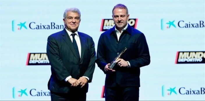 ظهر مدرب برشلونة هانز فليك ورئيس النادي خوان لابورتا في الحفل الذي نظمته صحيفة “موندو ديبورتيفو” بقصر المؤتمرات في كاتالونيا، تزامنًا مع الذكرى الـ120 لتأسيس الصحيفة. وتم تكريم فليك بعد موسم استثنائي قاد فيه برشلونة للتتويج بالدوري الإسباني وكأس الملك وكأس السوبر، إضافة إلى بلوغ نصف نهائي دوري أبطال أوروبا لأول مرة منذ 2019.