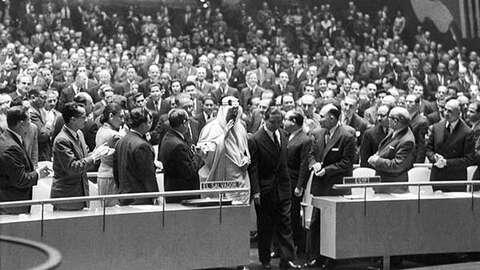 وعند افتتاح الدورة الأممية لعام 1959 تطرقت اللجنة السياسية التابعة للأمم المتحدة لملف القضية الجزائرية في 30 نوفمبر 1959 وقد اعتمدت فرنسا أسلوب الكرسي الشاغر وترك المجال لحلفائها وعلى رأسهم الولايات المتحدة الأمريكية للدفاع عنها، حيث حضر الوفد الجزائري الذي خصصت له ستة مقاعد في الأماكن المخصصة للملاحظين، وفي هذه الدورة كانت اليمن ضمن قائمة الدول السباقة إلى التصويت على لائحة اللجنة السياسية والتي كان عددها 38 صوتا ضد 26 صوتا وامتناع 17 صوتا، وقد ذكر ممثل اليمن في هذه الدورة فرنسا بما يلي : ” يجب على فرنسا أن تقبل المناقشة مع ممثلي الحكومة الجزائرية المؤقتة حول وسائل اختصار الفترة الانتقالية قبل الاستفتاء”.