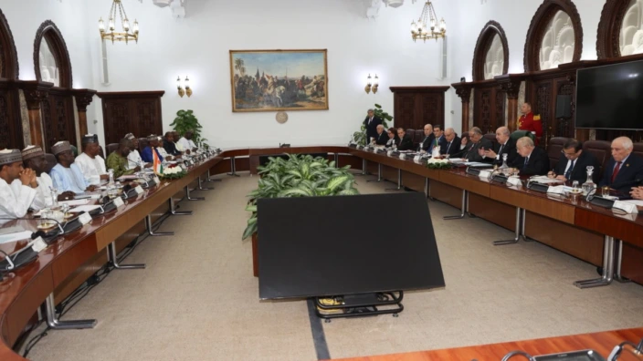 جرت, الاثنين، بمقر رئاسة الجمهورية, محادثات موسعة بين أعضاء الوفدين الجزائري والنيجري, تحت إشراف رئيس الجمهورية, السيد عبد المجيد تبون, ورئيس جمهورية النيجر, رئيس الدولة, الفريق عبد الرحمن تياني.