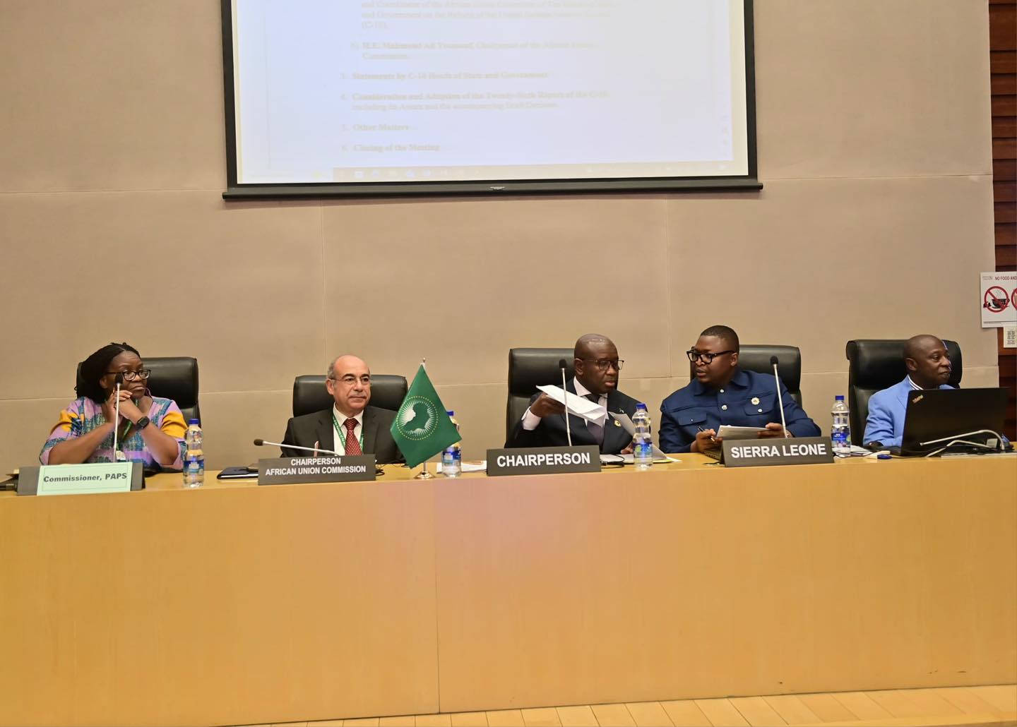 وأضاف رئيس الجمهورية، بأن إفريقيا تواجه نصيبًا كبيرًا من الأزمات المتشابكة، من استفحال آفتَي الإرهاب والجريمة المنظمة العابرة للحدود، وتفشي بؤر التوتر والنزاعات، وصولًا إلى ظاهرة التغييرات غير الدستورية للحكومات وما يرافقها من عدم استقرار وتحديات في الحوكمة.