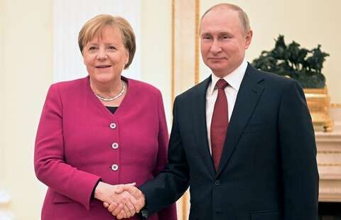وكانت المحادثات التي أجراها زعيما روسيا وألمانيا أثناء زيارة عمل قامت بها ميركل إلى موسكو، تناولت الأوضاع في ليبيا وسوريا، وتصعيد التوتر بين إيران والولايات المتحدة، والتسوية في أوكرانيا، إلى جانب العلاقات بين روسيا وألمانيا.