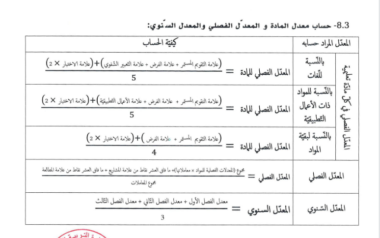 نشرت وزارة التربية الوطنية طريقة إحتساب المعدلات الفصلية والسنوية بالنسبة للمتمدرسين في الأطوار التعليمية الثلاثة.