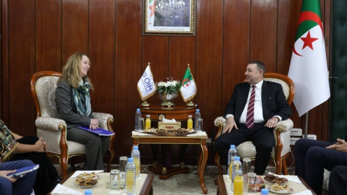 استقبل وزير الداخلية والجماعات المحلية والنقل، السيد السعيد سعيود، الثلاثاء، بالجزائر العاصمة, المديرة العامة للمنظمة الدولية للهجرة, السيدة إيمي بوب التي تقوم بزيارة رسمية الى الجزائر.