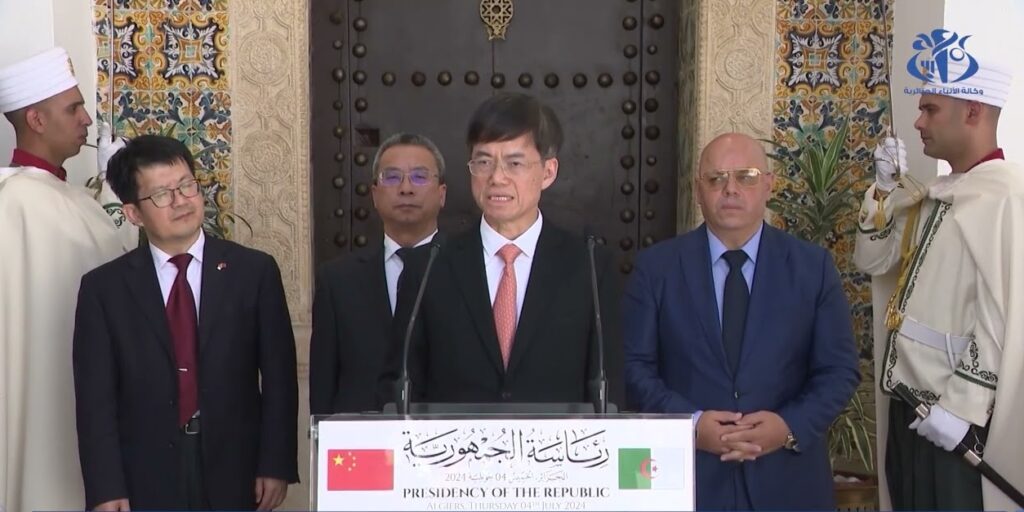 في تصريح له عقب اللقاء، قال السيد باي جين جيا، إن زيارته للجزائر تندرج في إطار الاحتفال بالذكرى 62 لعيد الاستقلال، مؤكدا أن العلاقات بين الجزائر والصين عرفت خلال السنوات الأخيرة ديناميكية إيجابية ميزتها الثقة المتبادلة والصداقة العميقة، بالإضافة إلى رؤية مستقبلية مشتركة واستراتيجية. وأوضح الوزير الصيني، أن هذه الزيارة تشكل فرصة لكل من وزارة شؤون قدامى المحاربين الصينية ووزارة المجاهدين وذوي الحقوق، لتعزيز علاقاتهما قصد تبادل الخبرات، مضيفا بأن الزيارة سمحت له باكتشاف المتحف الوطني للمجاهد، حيث تلقينا شروحات حول مختلف مراحل تاريخ الجزائر، لاسيما مرحلة ثورة الفاتح من نوفمبر المجيدة، وهو ما يذكرنا كذلك بكفاح الشعب الصيني. وأكد الوزير الصيني، أن رئيسي البلدين يعملان معا للحفاظ على التعاون الثنائي في أعلى مستوياته، مشيرا إلى أن المحادثات التي جمعته بالسيد رئيس الجمهمورية تناولت سبل تعزيز العلاقات في مختلف المجالات، بما يخدم مصالح البلدين والشعبين الصديقين، مع تبادل وجهات النظر حول القضايا الثنائية والإقليمية والدولية ذات الاهتمام المشترك.