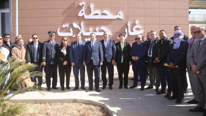 وقام الوفد، الذي ضم وزير الدولة، وزير المحروقات والمناجم محمد عرقاب، ووزير الداخلية والجماعات المحلية والنقل سعيد سعيود, ووزيرالأشغال العمومية والمنشآت القاعدية عبد القادر جلاوي، ووزيرة السياحة والصناعة التقليدية حورية مداحي، وكاتبة الدولة لدى وزير المحروقات والمناجم المكلفة بالمناجم كريمة بكير طافر، بتقييم ميداني لمدى تقدم أشغال الخط المنجمي الغربي ومدى جاهزية الهياكل القاعدية للسكك الحديدية، لا سيما على مستوى محطة القطار “مناعي محمد” لبشار.