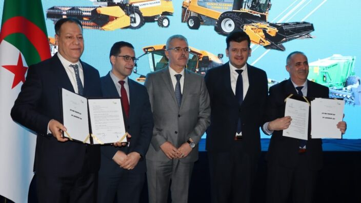 أشرف ياسين وليد، وزير الفلاحة والتنمية الريفية والصيد البحري، بولاية سيدي بلعباس، على مراسم التوقيع على اتفاقية بين شركة تسويق المعدات الفلاحية (PMAT TRADING) وشركة (AGRO DRIVE)، فرع مجمع “أغروديف”، لاقتناء 331 آلة حصاد و1800جرار، من أجل دعم الحظيرة الوطنية للعتاد الموجه لعمليات الحرث والبذر والحصاد والدرس.